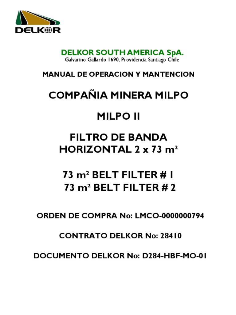 Compania Minera Milpo Milpo Ii Filtro De Banda Horizontal 2 X 73 M 73 M Belt Filter 1 73 M Belt Filter 2 Engranaje Bomba